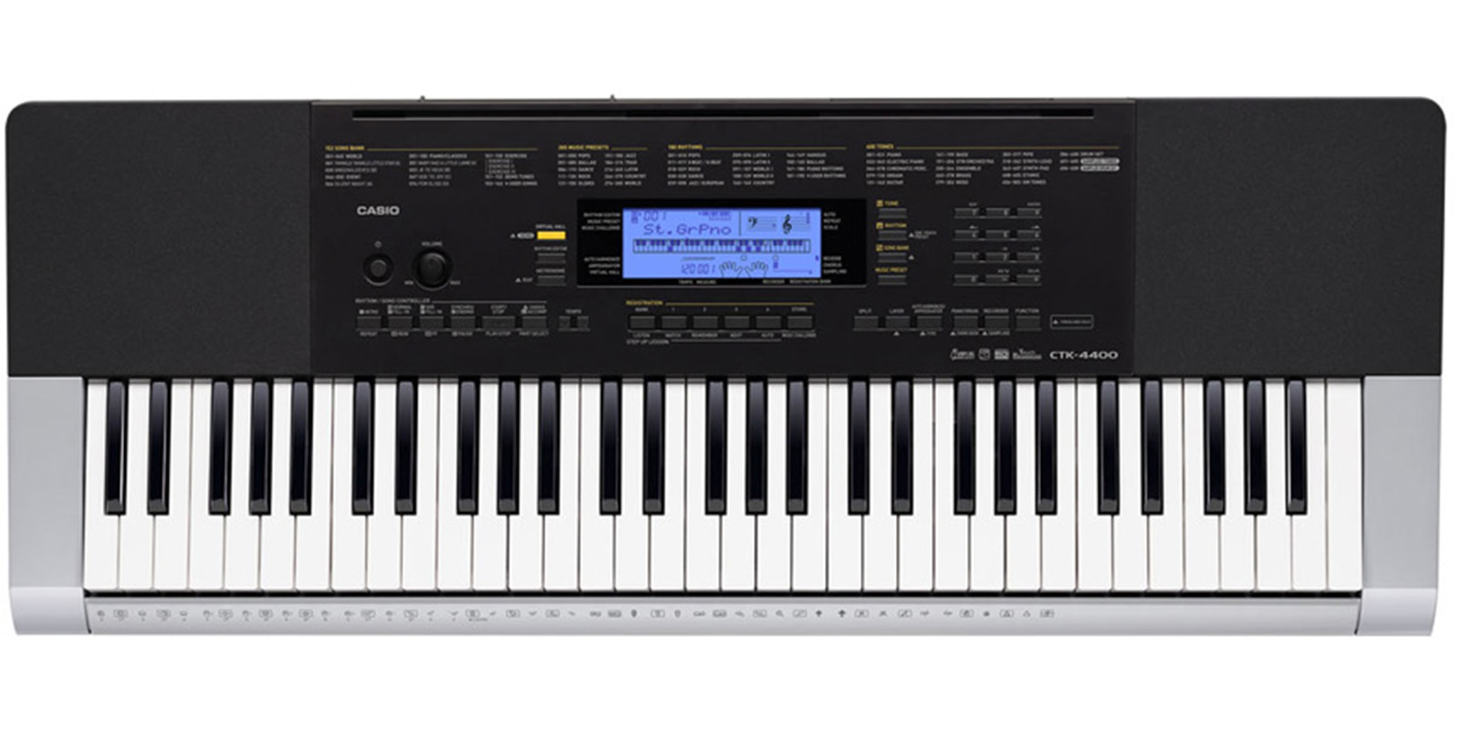 Editor de ritmos (10 ritmos creados por el usuario).Registro: 32 ajustes (4 ajustes x 8 bancos).Pre ajuste musical: 305 pre ajustes.Pre ajuste con un botón: 180 ajustes.Armonización automática: 12 tipos.Control de arpegio: 90 tipos.Escala predefinida: temperamento igual + 16 tipos.Cambio de octava: ±2 octavas.Desafío musical.Controlador de ritmos y canciones.Botón Piano/Órgano.Función Chord Book (lista de acordes).
