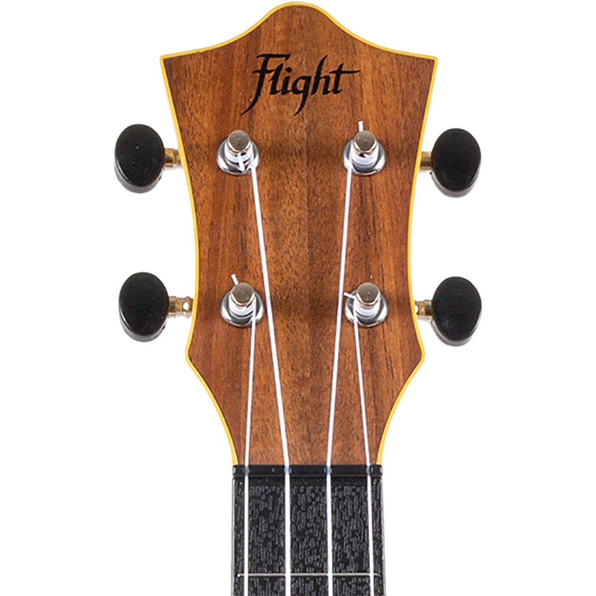 Todos los ukeleles de Flight cuentan con un cabezal cuidadosamente diseñado equipado con afinadores de engranaje que facilitan el afinado del ukelele. La chapa del clavijero está hecha de tilo y combina con la tapa armónica.