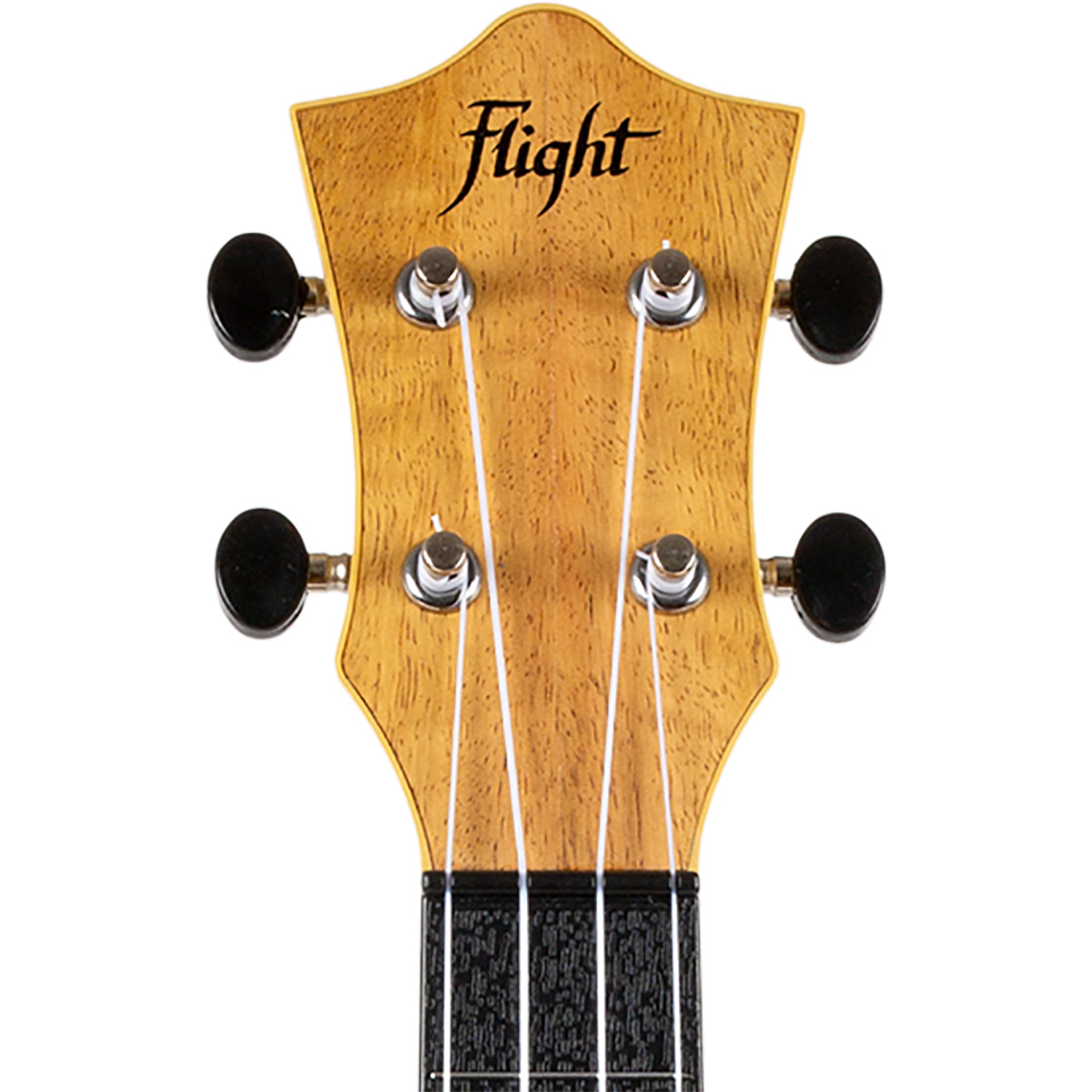 Todos los ukeleles de Flight cuentan con un cabezal cuidadosamente diseñado equipado con afinadores de engranaje que facilitan el afinado del ukelele. La chapa del clavijero está hecha de tilo y combina con la tapa armónica.