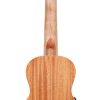 Cejuela de hueso y puente de nogal.La cejuela puede ser un componente pequeño, pero determina el tono del sonido. La cejuela y la montura de este ukelele están hechos de hueso (no de plástico). Sólo uno de los detalles que hacen que este ukelele sea realmente especial.