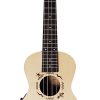 Cejuela de hueso y puente de nogal.La cejuela puede parecer un componente pequeño, pero juega un papel fundamental en la calidad del sonido de un instrumento. La cajuela y la montura del DUS525 están hechos de hueso (no de plástico). Este es sólo uno de los detalles que hacen que este ukelele sea realmente especial.