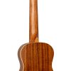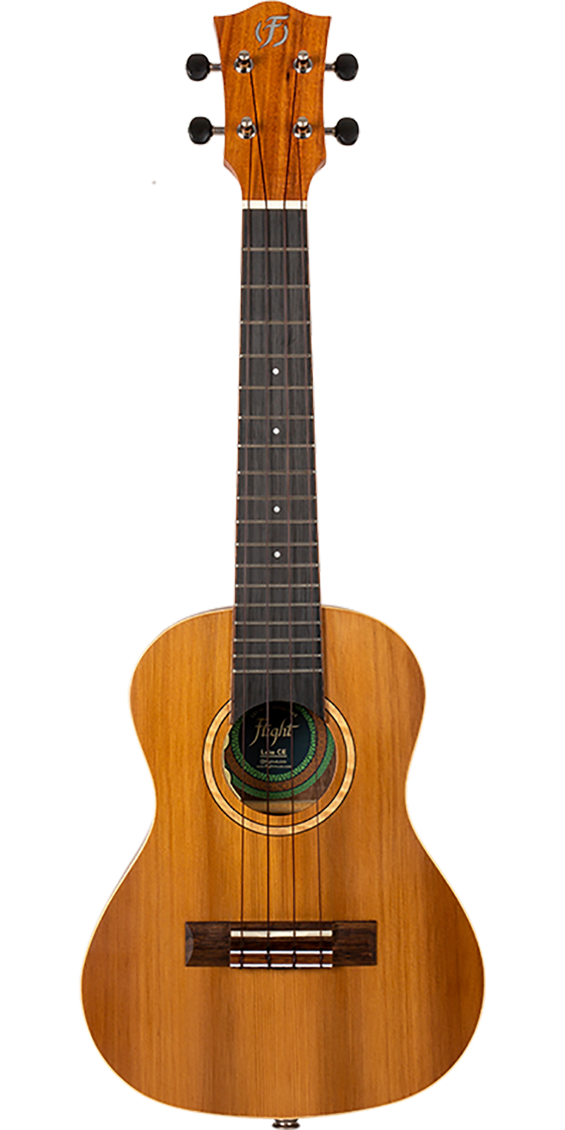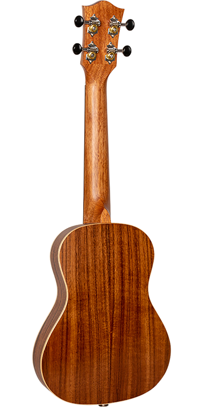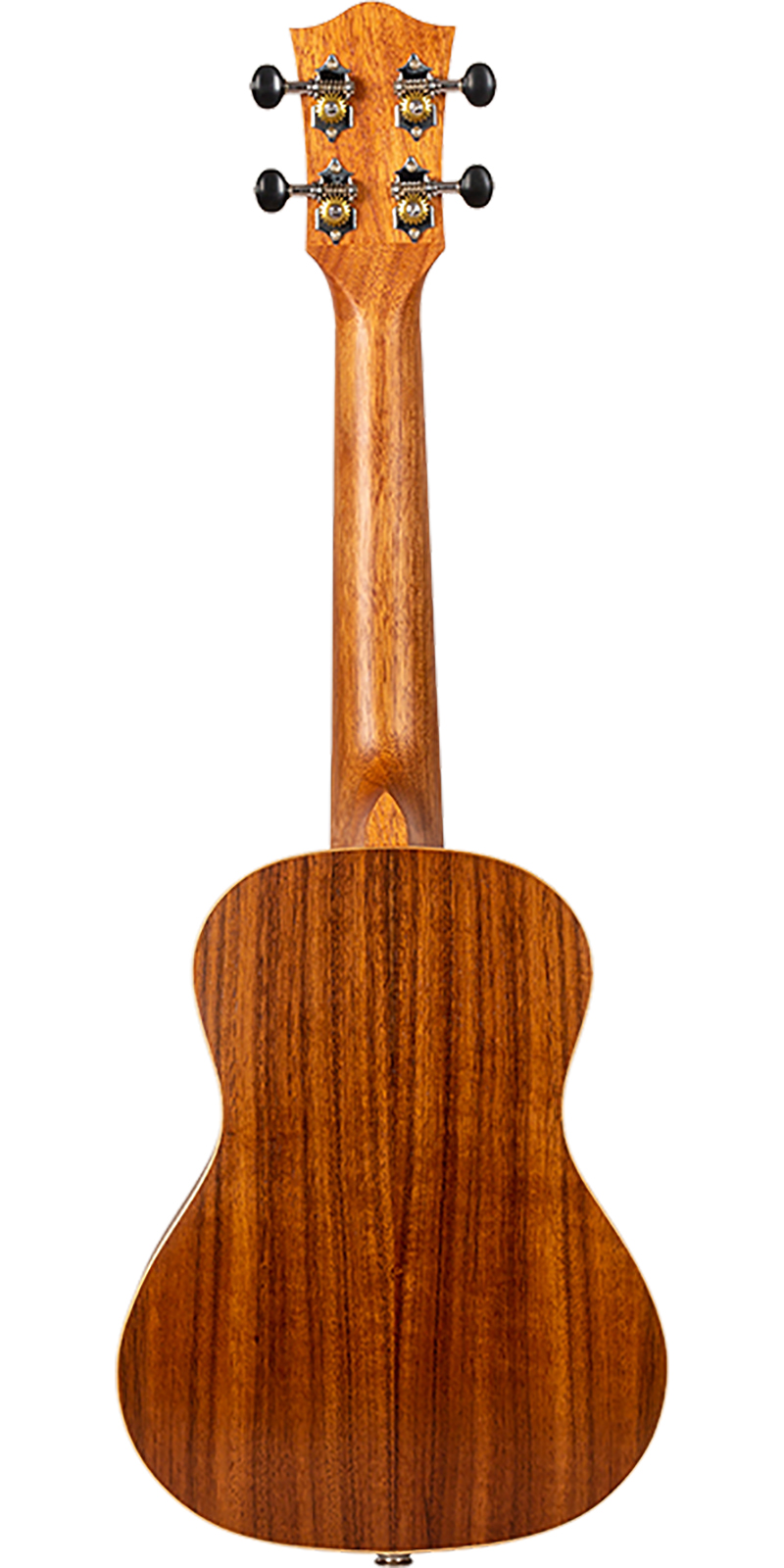 Cedro y acacia.El cedro es una madera de ukelele conocida por su brillante claridad y volumen. Combinado con el fondo de cedro totalmente sólido, se encuentra un impresionante laminado de acacia. La acacia pertenece a la familia de la madera de Koa hawaiana y se utiliza para hacer ukeleles que suenan realmente únicos. La combinación de las maderas de cedro y acacia proporciona una belleza de pura de sonido, rica en proyección clara. Para poner ambas maderas juntas utilizamos una deliciosa unión de maple. Este ukelele de línea delgada presenta un acabado satinado para un toque suave y duradero.