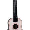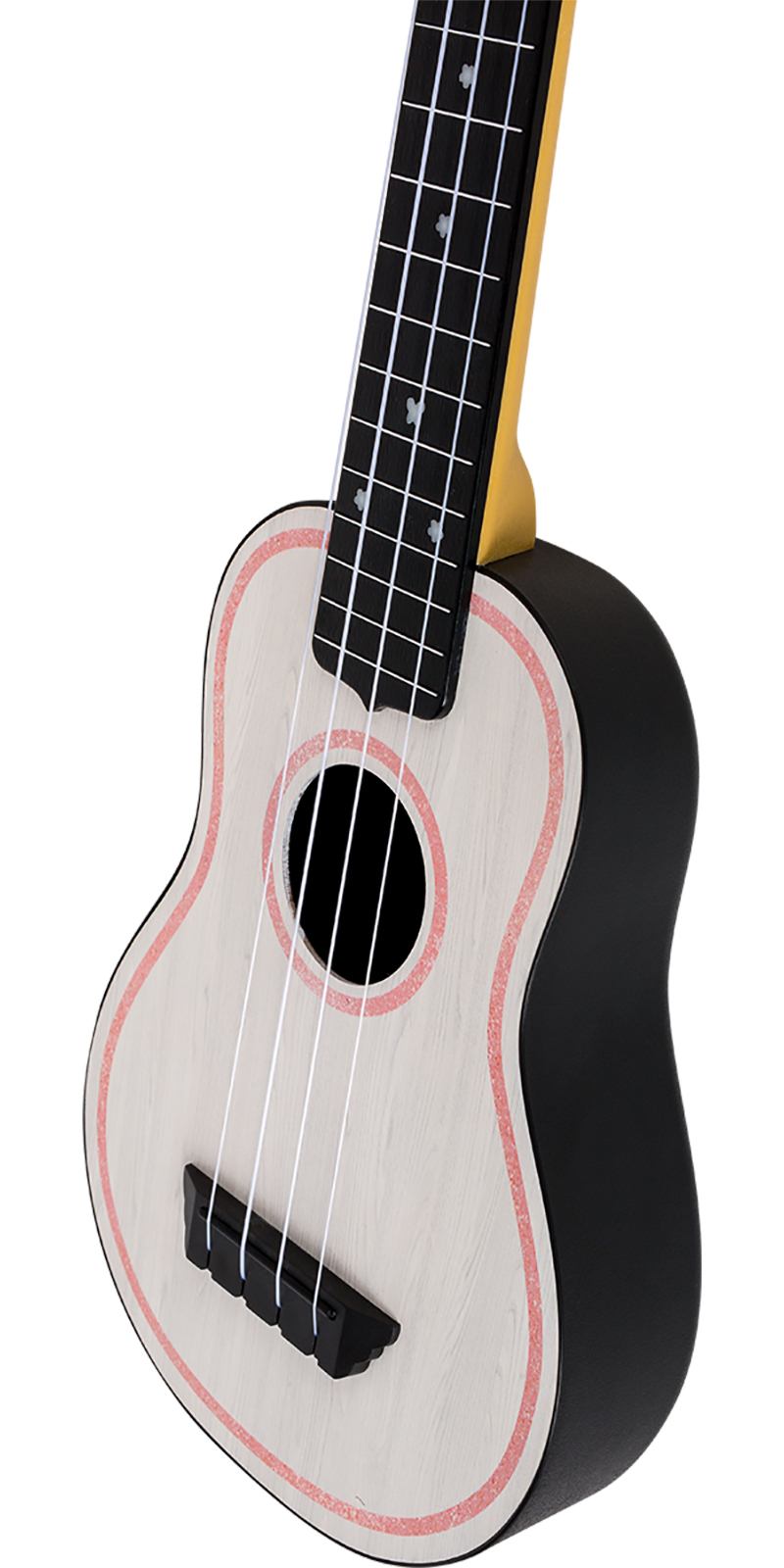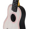 Brazo y diapasón de plástico ABS.El brazo y el diapasón de este uke están fabricados a partir de plástico ABS. Es una solución perfecta para ukeleles de principiantes, ya que no es propenso a cambios climáticos. Nunca obtendrás un traste afilado o un brazo doblado en ninguno de estos ukeleles. La superficie del brazo imita el patrón de la madera, para evitar la sensación de plástico barato.