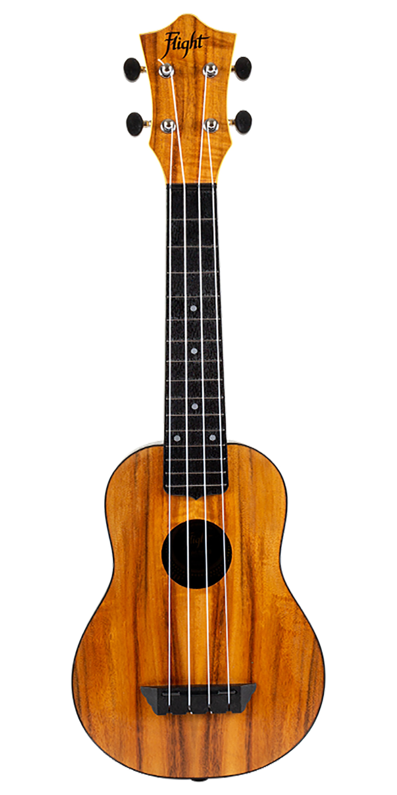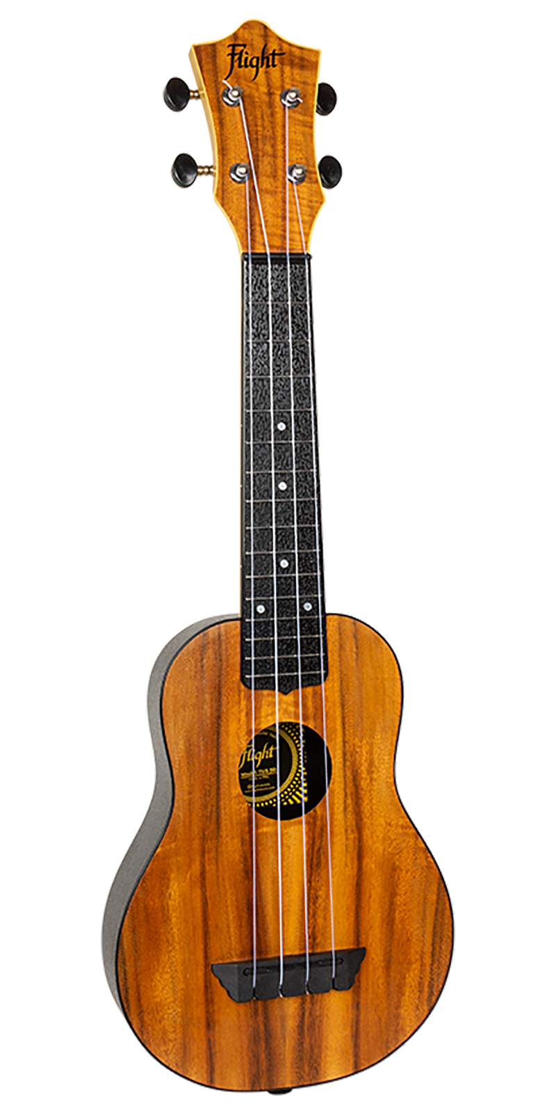 Generalmente ofrecemos nuestra serie de ukeleles Travel con colores fríos o diseños gráficos impresionantes, pero el ukelele Flight Travel TUS55 Acacia Soprano ofrece un guiño al diseño clásico del ukelele mediante el uso de acacia laminado. La acacia pertenece a la misma familia que la Koa y es una madera de tono popular. Presenta un tono brillante, mucho golpe y un gran sustain.