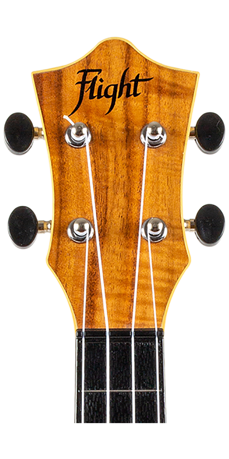 Atractivo y fácil de afinar.El diseño del cabezal es una parte integral de nuestra identidad. La chapa del clavijero está hecha de mango laminado y combina con la placa de sonido del ukelele. Todos los ukeleles Flight cuentan con un cabezal cuidadosamente diseñado, equipado con afinadores engranados que siempre mantendrán su afinación (una vez afinados).