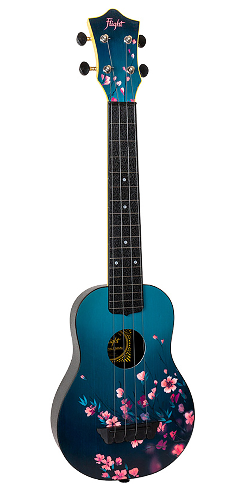 El diseño del cabezal es un elemento integral de todos los ukeleles de Flight. La chapa del cabezal está hecha de madera de tilo para combinar con la caja de resonancia.