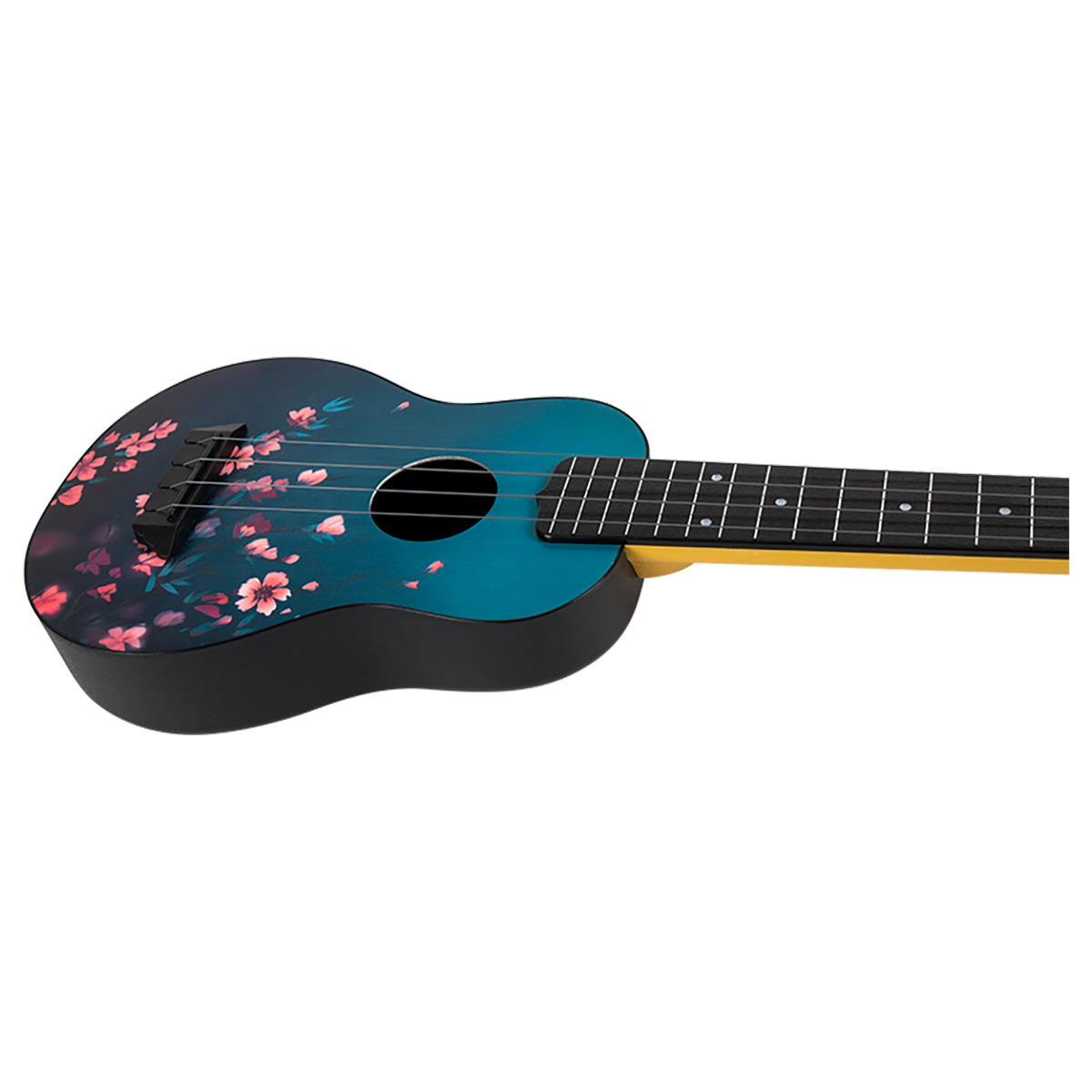 El brazo y el diapasón están hechos de plástico ABS, una solución perfecta para un ukelele básico. El ABS es resistente a los cambios climáticos. Nunca experimentarás un traste agudo o un brazo doblado con ninguno de nuestros ukeleles de viaje. La superficie del brazo imita un patrón de madera, lo que agrega una experiencia táctil al instrumento.