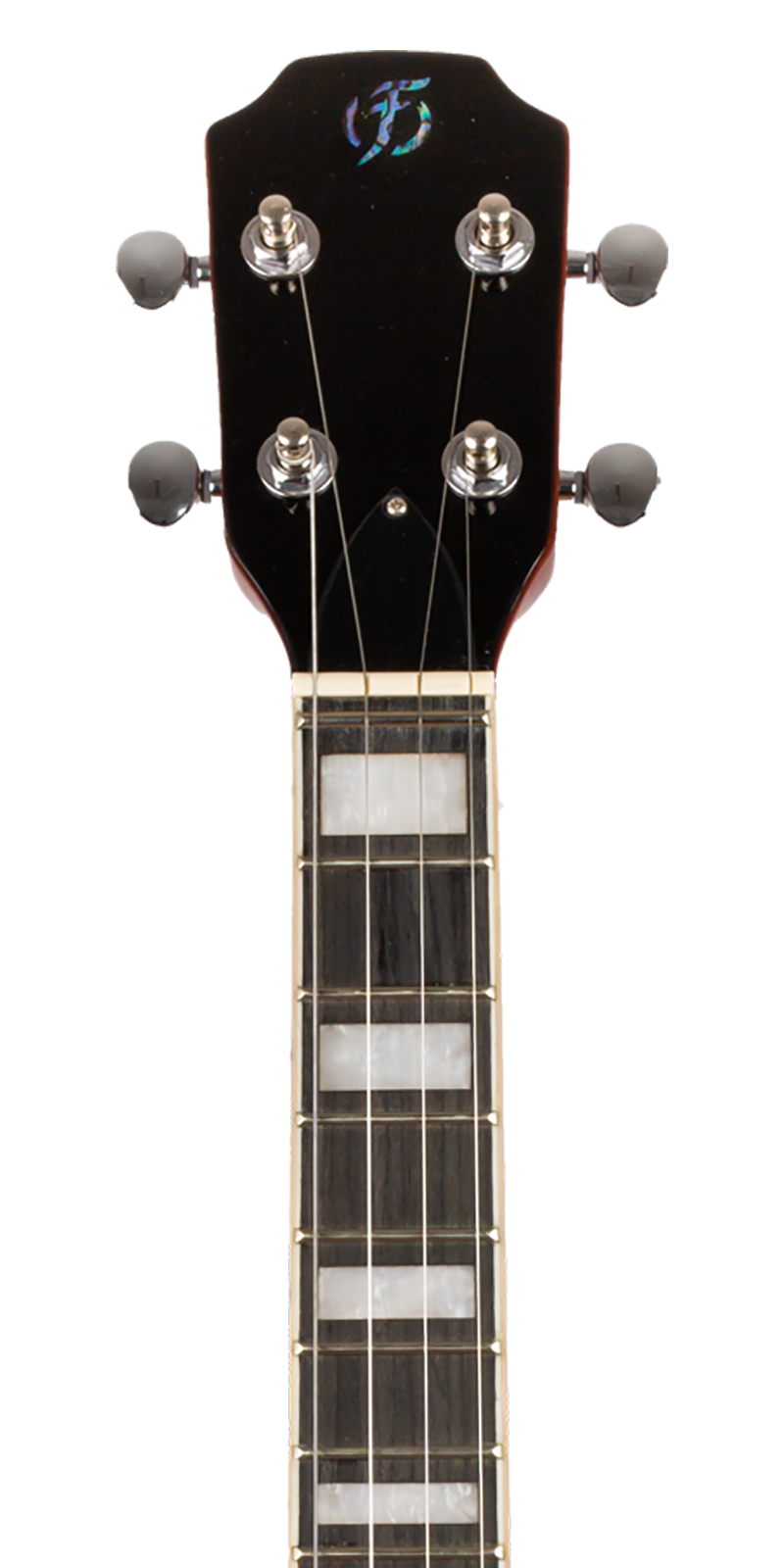 Como toque final, el ukelele Centurion de Flight presenta un cabezal con una chapa negra brillante, logotipo de Flight abalone y afinadores con engranajes cerrados. El clavijero es el complemento perfecto para este ukelele estilo clásico.