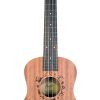 Madera de sapeli.El sapeli es una madera dura ligera del África tropical con un color dorado a marrón. Un pariente cercano de la caoba, su grano está entrelazado y tiene una textura uniforme y un brillo natural. Su resonancia natural es potenciada y concentrada por su fondo arqueado, produciendo un tono claro y brillante. Las rosetas de todos nuestros ukeleles se dibujan a mano y se graban con láser.