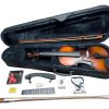 Este modelo MV012P-AM4-4-4 incluye un conjunto completo de accesorios que facilitan la experiencia del músico. Viene con un arco, brea, afinador, cuerdas, desansador de hombro y guías para el arco y las notas, asegurando que tengas todo lo necesario para comenzar a tocar de inmediato. El diapasón de granadillo proporciona una excelente respuesta y durabilidad, lo que lo convierte en un instrumento confiable para el uso diario.